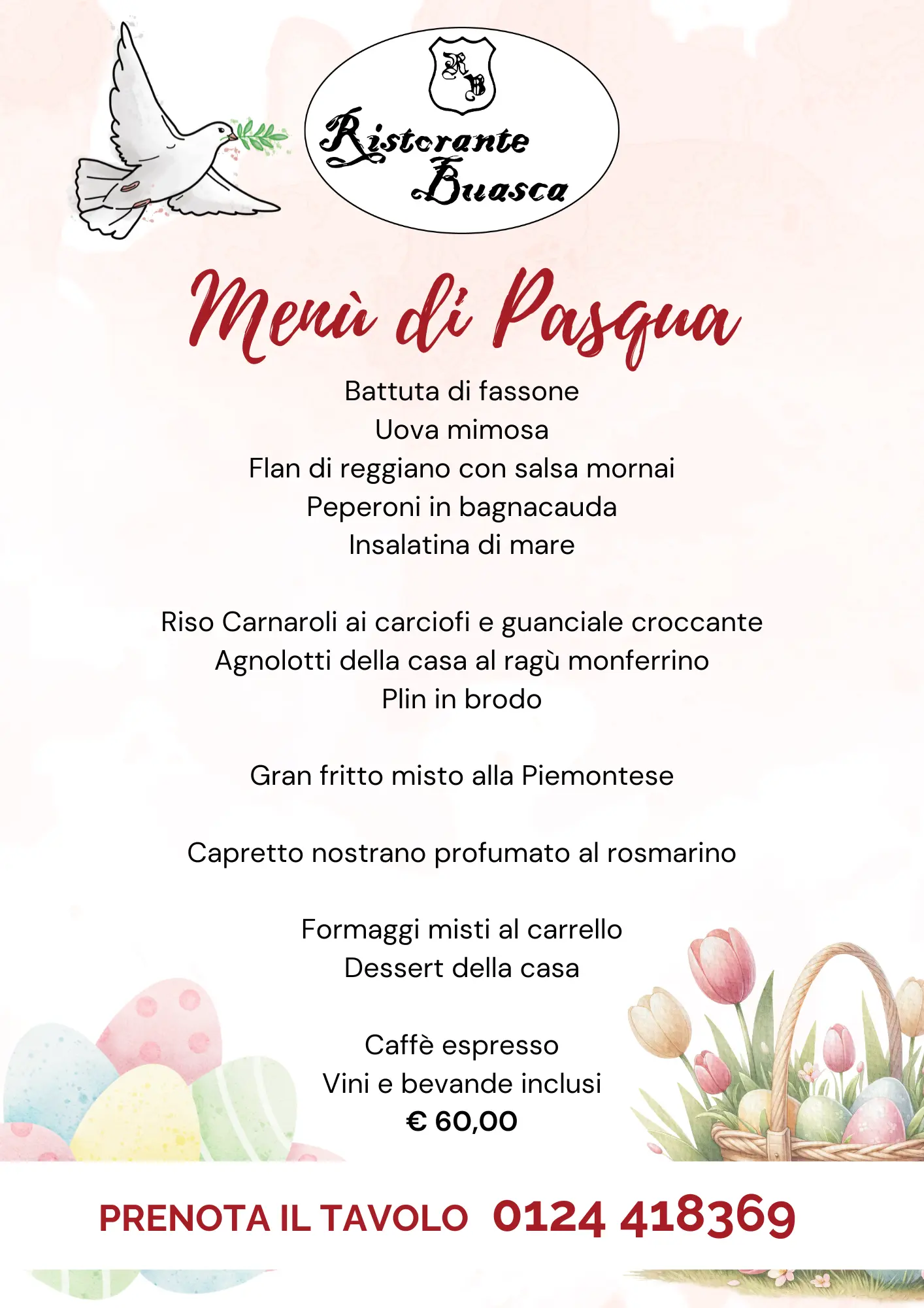 A PASQUETTA SARÀ POSSIBILE PRANZARE CON IL MENÙ ALLA CARTA.
